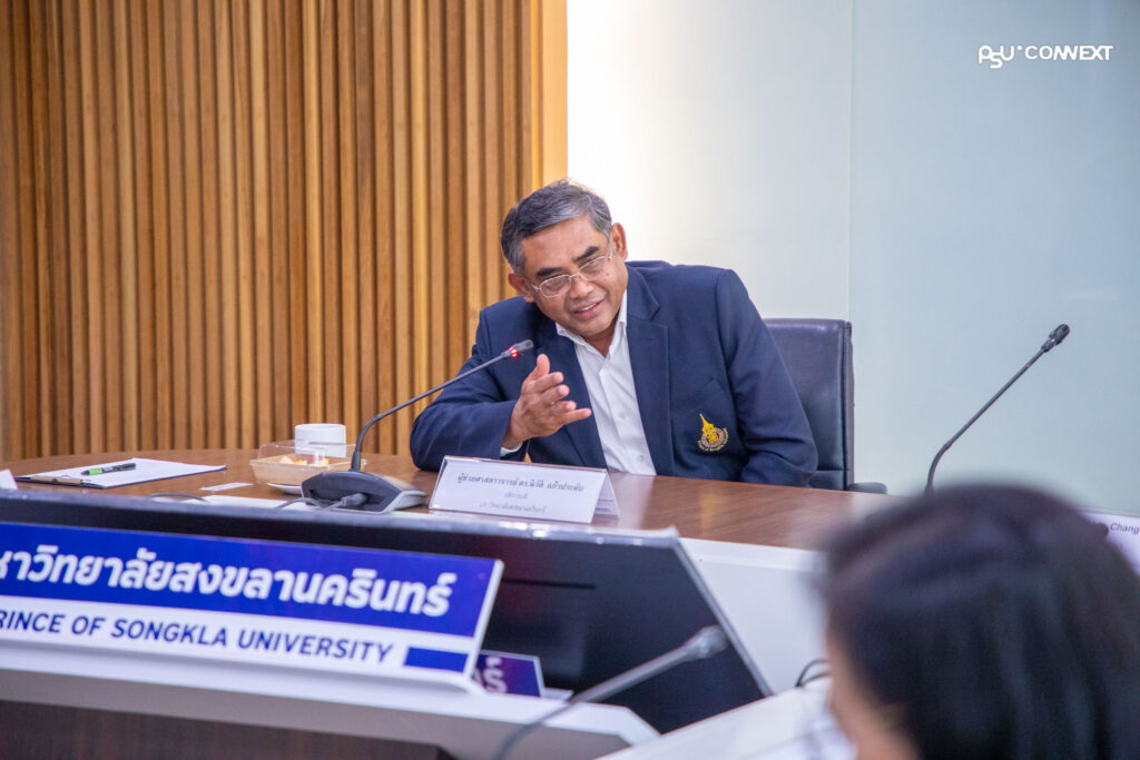 เมื่อวันที่ 19 มกราคม 2569 ที่ผ่านมา – มหาวิทยาลัยสงขลานครินทร์ นำโดย ผู้ช่วยศาสตราจารย์ ดร.นิวัติ แก้วประดับ อธิการบดี ร่วมพูดคุยหารือเรื่องความร่วมมือด้านการผลิตกำลังคน การฝึกประสบการณ์ สำหรับนักศึกษา และการพัฒนา Talent Ecosystem โดยมี รองศาสตราจารย์ ดร.สุรพงษ์ ชาติพันธุ์ รองผู้อำนวยการฝ่ายนวัตกรรมการศึกษา สำนักการศึกษาและนวัตกรรมการเรียนรู้ ผู้ช่วยศาสตราจารย์ ดร.ปริญญา คงพรม ผู้ช่วยคณบดีฝ่ายวิชาการ คณะวิศวกรรมศาสตร์ ศาสตราจารย์ ดร.ณัฎฐา จินดาเพ็ชร์ อาจารย์ประจำแขนงไฟฟ้า คณะวิศวกรรมศาสตร์ รองศาสตราจารย์ ดร.ปภาวี ฟาน โดมเมเลน ผู้ช่วยคณบดีฝ่ายสหกิจศึกษา คณะวิทยาศาสตร์ ศาสตราจารย์ ดร.มิตรชัย จงเชี่ยวชำนาญ คณบดีบัณฑิตวิทยาลัย และทีมนักวิชาการของมหาวิทยาลัย ร่วมให้การต้อนรับ Mr. Jackie Chang President & COO, Miss Rattanapat Vhatchargul Employer Branding & Communication Manager- SEA HR และ Miss Karnnaphat Napitchsit Senior Employee Communication & branding officer- SEA HR ทีมผู้บริหารจาก บริษัท เดลต้า อีเลคโทรนิคส์ (ประเทศไทย) จำกัด (มหาชน) ณ ห้องประชุม 215 สำนักงานอธิการบดี มหาวิทยาลัยสงขลานครินทร์ วิทยาเขตหาดใหญ่ ทั้งนี้ จากการพูดคุยหารือดังกล่าว ทางผู้บริหารจากบริษัท เดลต้า อีเลคโทรนิคส์ (ประเทศไทย) จำกัด (มหาชน) ได้เล็งเห็นโอกาสในความร่วมมือด้านต่าง ๆ กับทางมหาวิทยาลัยสงขลานครินทร์ (ม.อ.) หลังจากที่ได้มีนักศึกษาเข้าร่วมฝึกประสบการณ์หรือ CWIE กับทางบริษัทฯ และได้รับผลการตอบรับที่ดีจากสถานประกอบการ ขณะที่ในอนาคตทางบริษัทฯ กำลังมีแผนสร้างโรงงานเพิ่มอีก 9 แห่ง ซึ่งพร้อมที่จะรับนักศึกษาโดยเฉพาะในสาขา Computer Science เพิ่มอีกจำนวนมาก คาดหวังว่าจากนี้ทางบริษัท เดลต้า อีเลคโทรนิคส์ (ประเทศไทย) จำกัด (มหาชน) จะได้มีโอกาสเข้ามาทำให้เกิดเป็นรูปธรรมมากยิ่งขึ้นอีกด้วย#