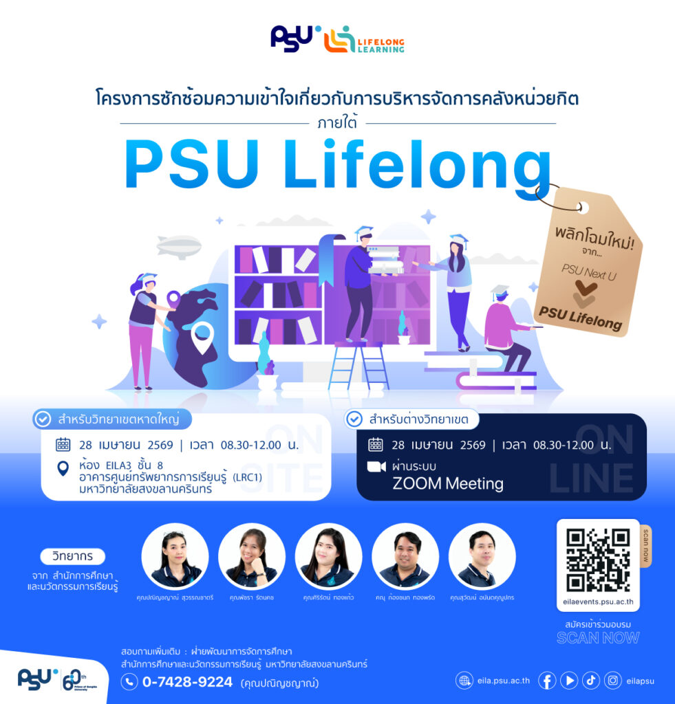 เชิญชวนเข้าร่วมอบรมโครงการซักซ้อมความเข้าใจเกี่ยวกับการบริหารจัดการคลังหน่วยกิต ภายใต้ PSU Lifelong